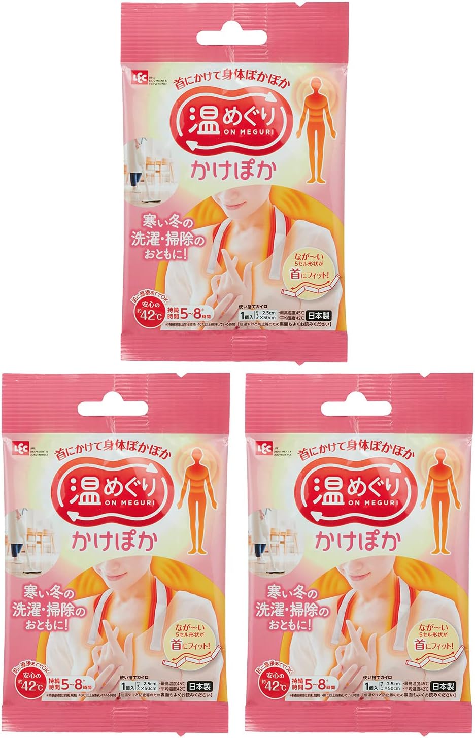 This disposable neck warmer is designed for easy use—simply hang it around your neck and enjoy the warmth. The "Kakepoka" feature provides comforting heat to your neck. It emits heat from both sides, ensuring a steady warmth. The long, slim shape fits comfortably around your neck, leaving your hands free for other tasks. The warmer is divided into five sections, preventing the powder from shifting, so it stays securely in place while you work. It can reach a maximum temperature of 45°C and provides warmth for 5 to 8 hours.